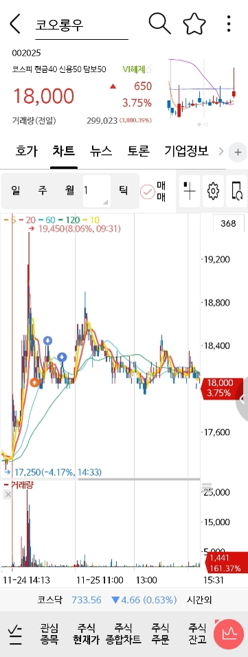 코오롱 우선주는 잠잠했기에 짧게 매매