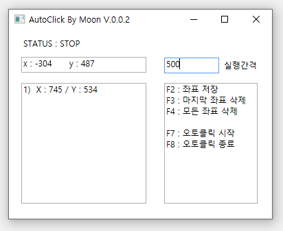 * 여러 포인트가 저장된 경우 포인트 1번부터 순차적으로 자동 클릭한다.